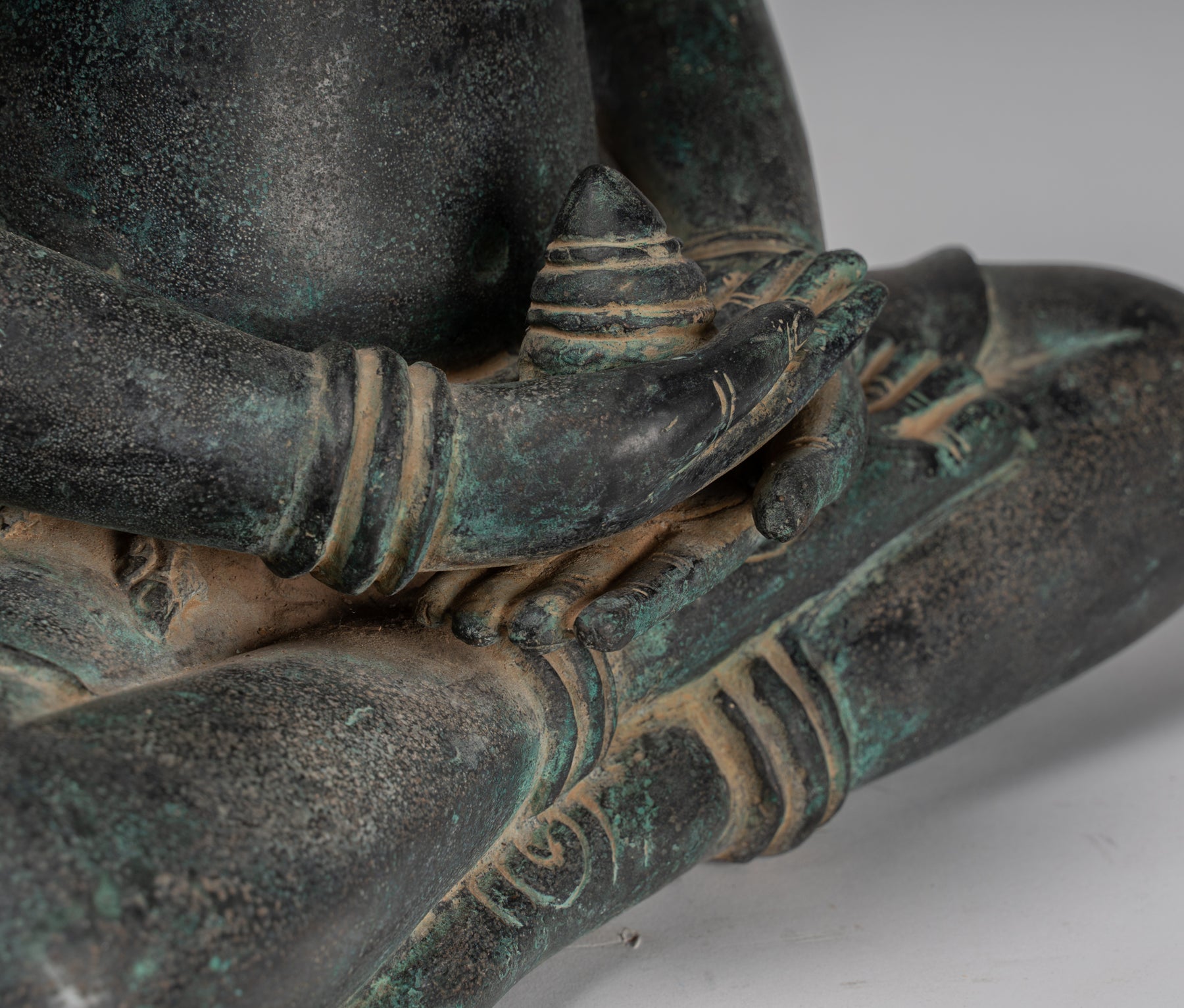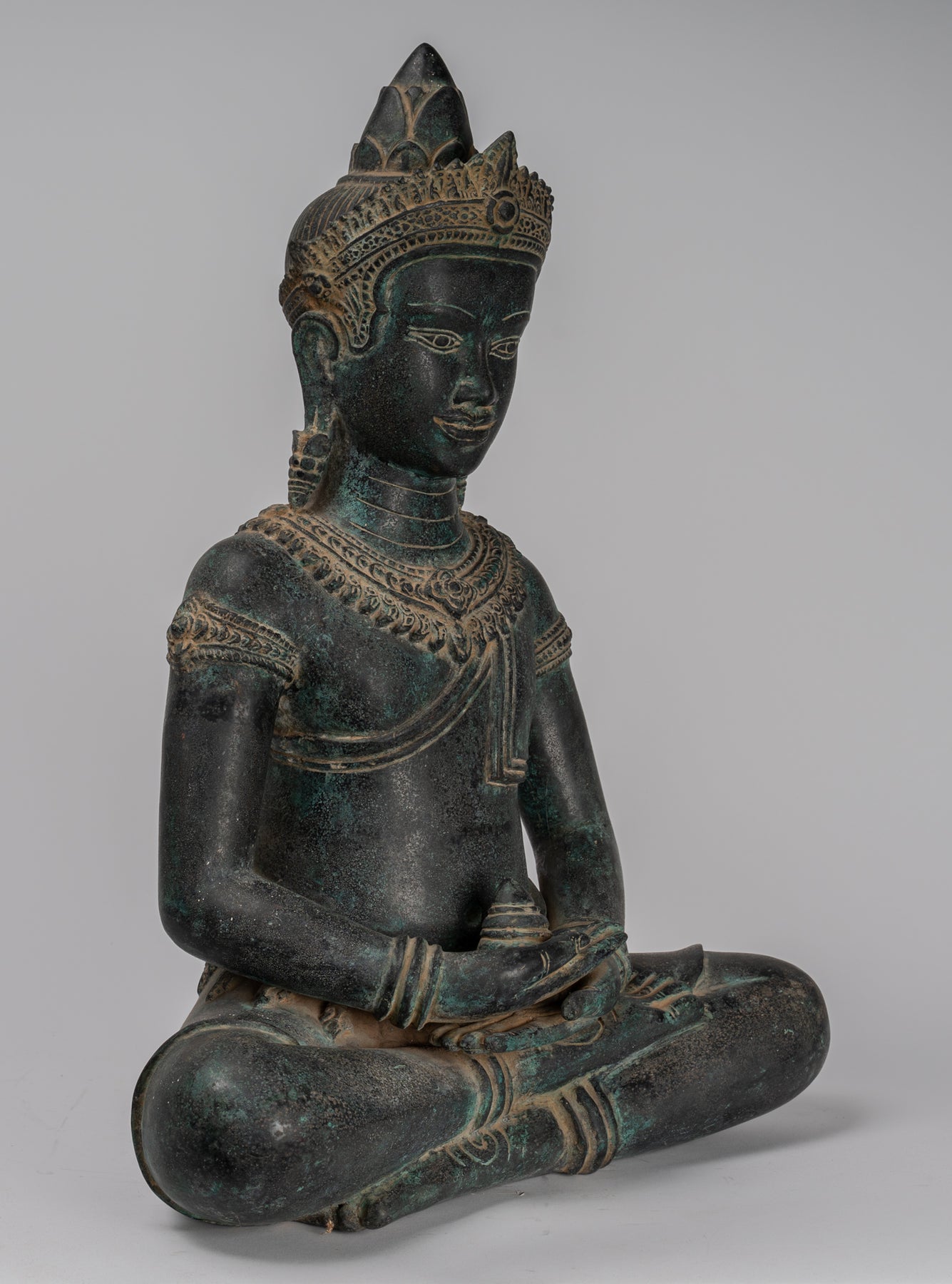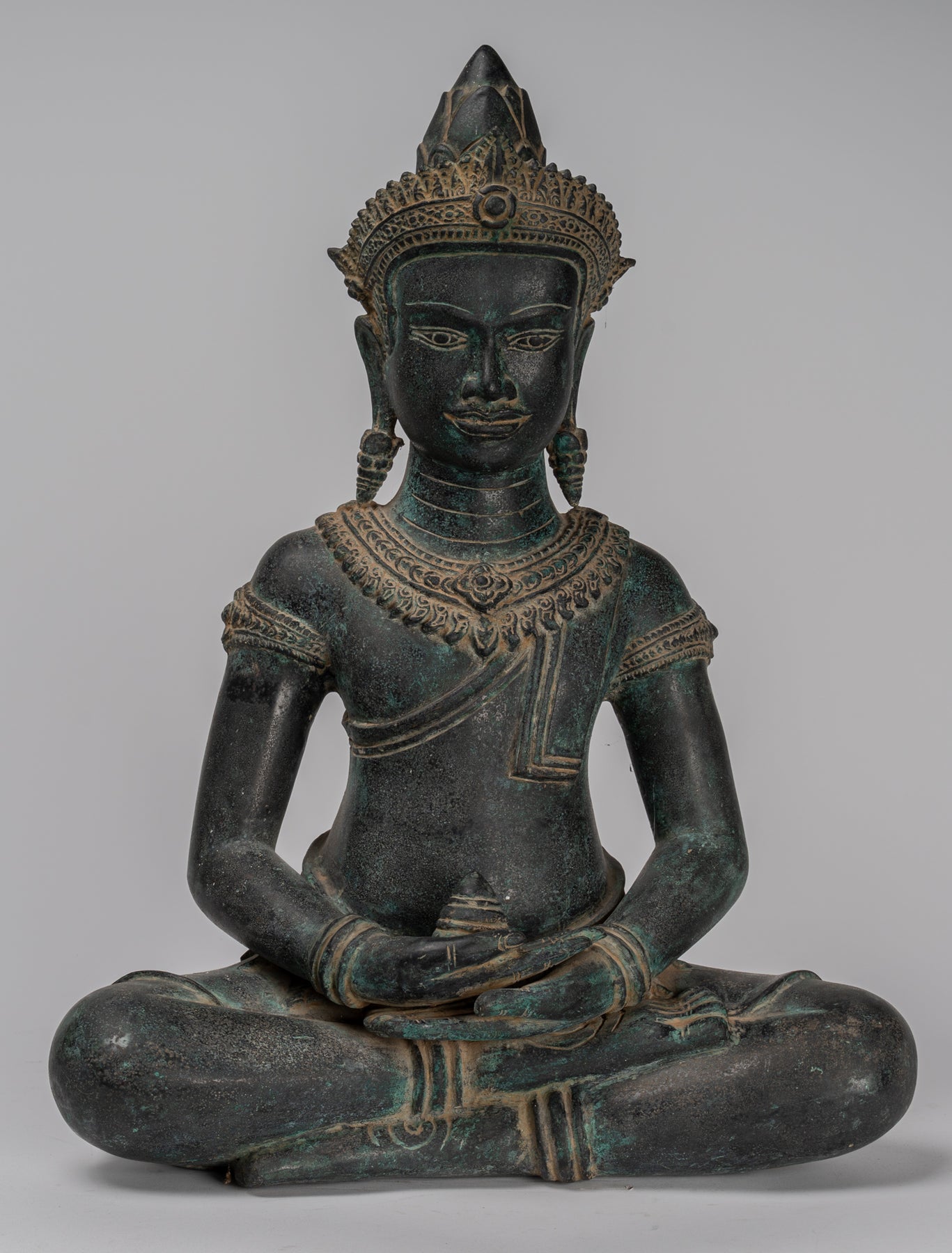 Buddha Statue - Antique Khmer Style Bronze Seated Amitabha Meditation Buddha Statue - 55cm/22"