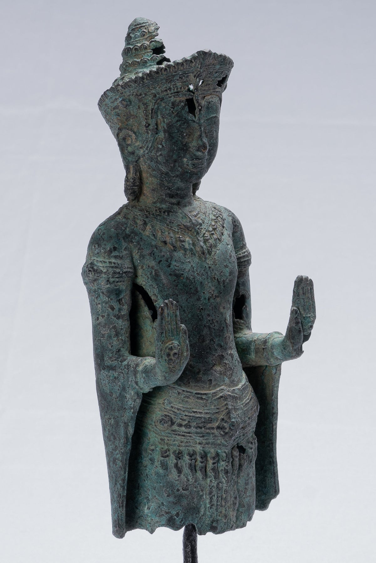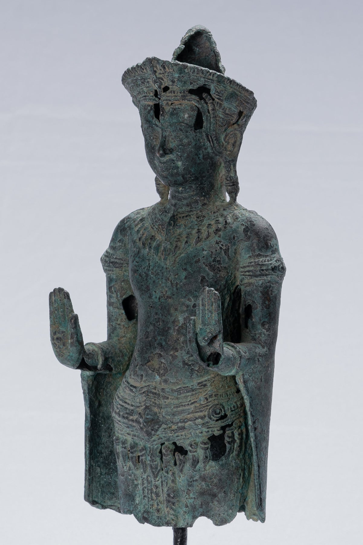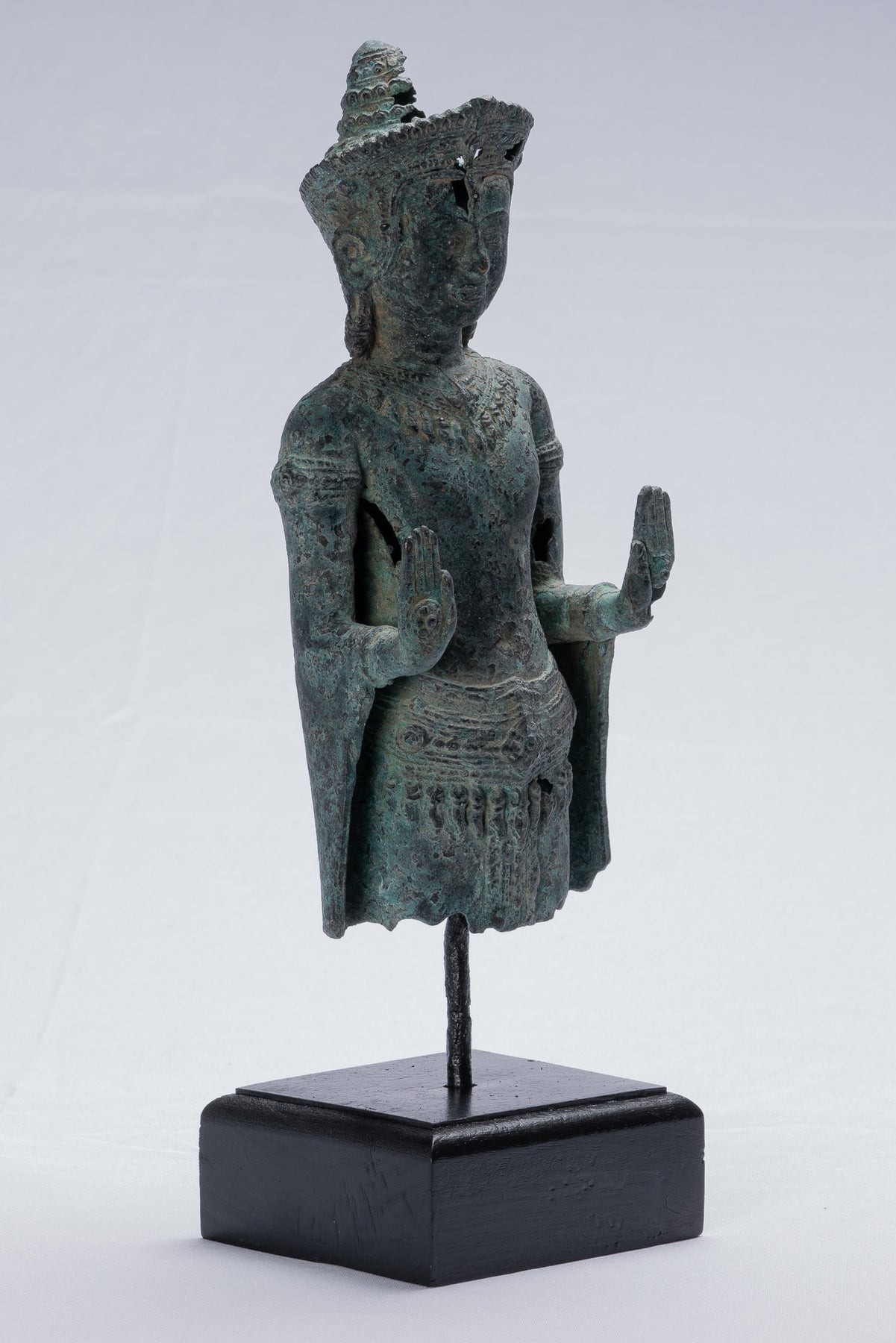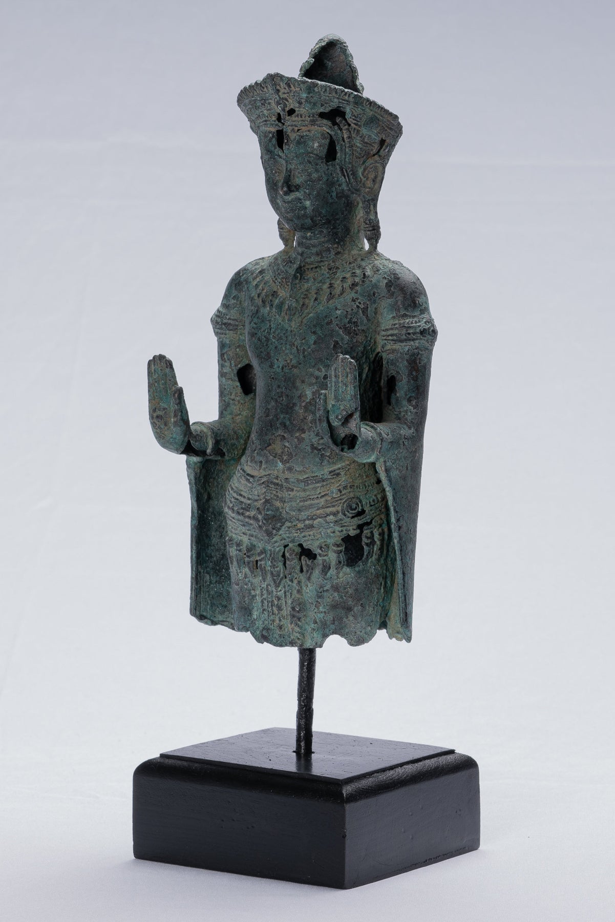 Buddha Statue - Antique Khmer Style Bronze Standing Abhaya Protection Buddha Statue - 32cm/13"