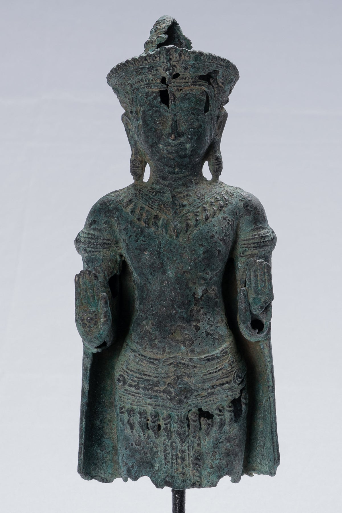 An antique Khmer style Buddha depicting Buddha after his enlightenment. The Lord Buddha is stood in the double Abhaya or protection mudra.