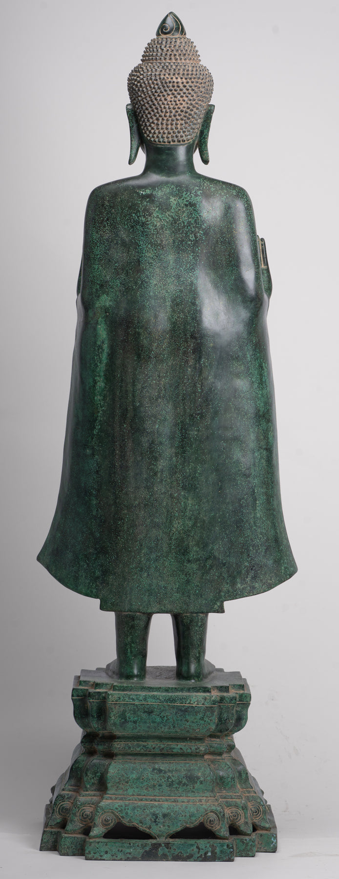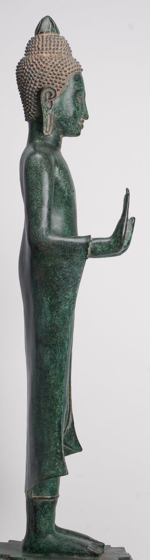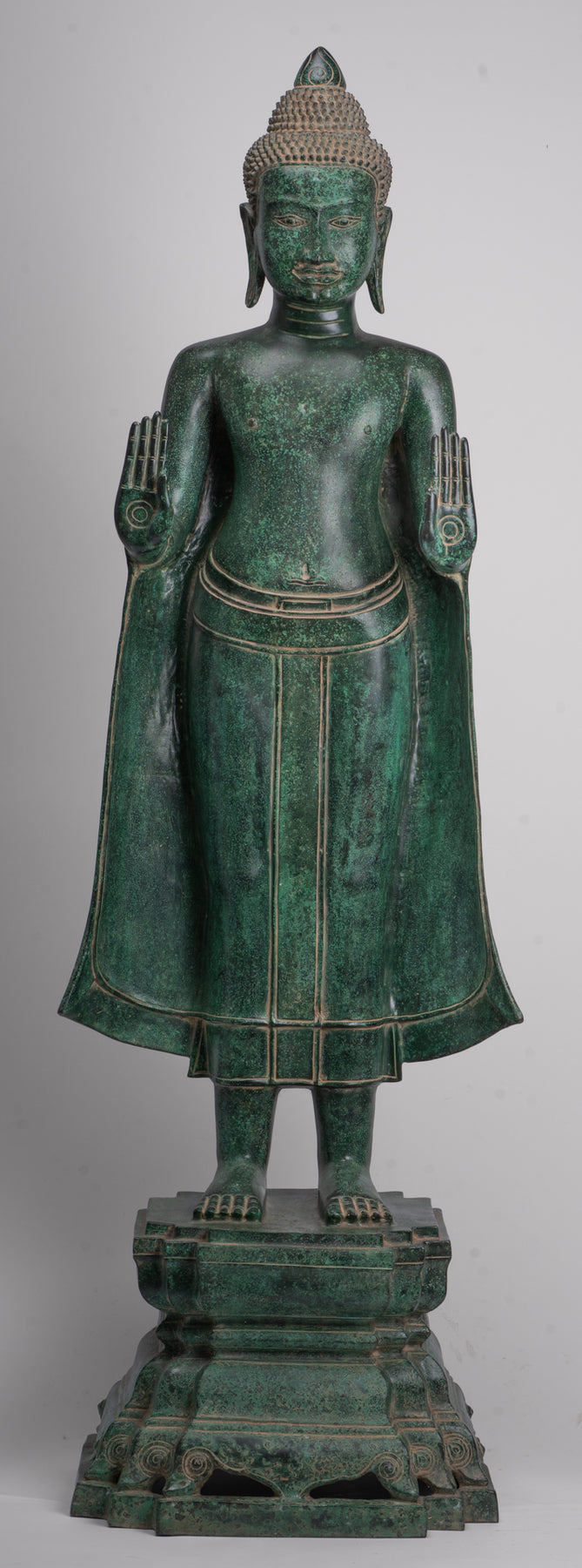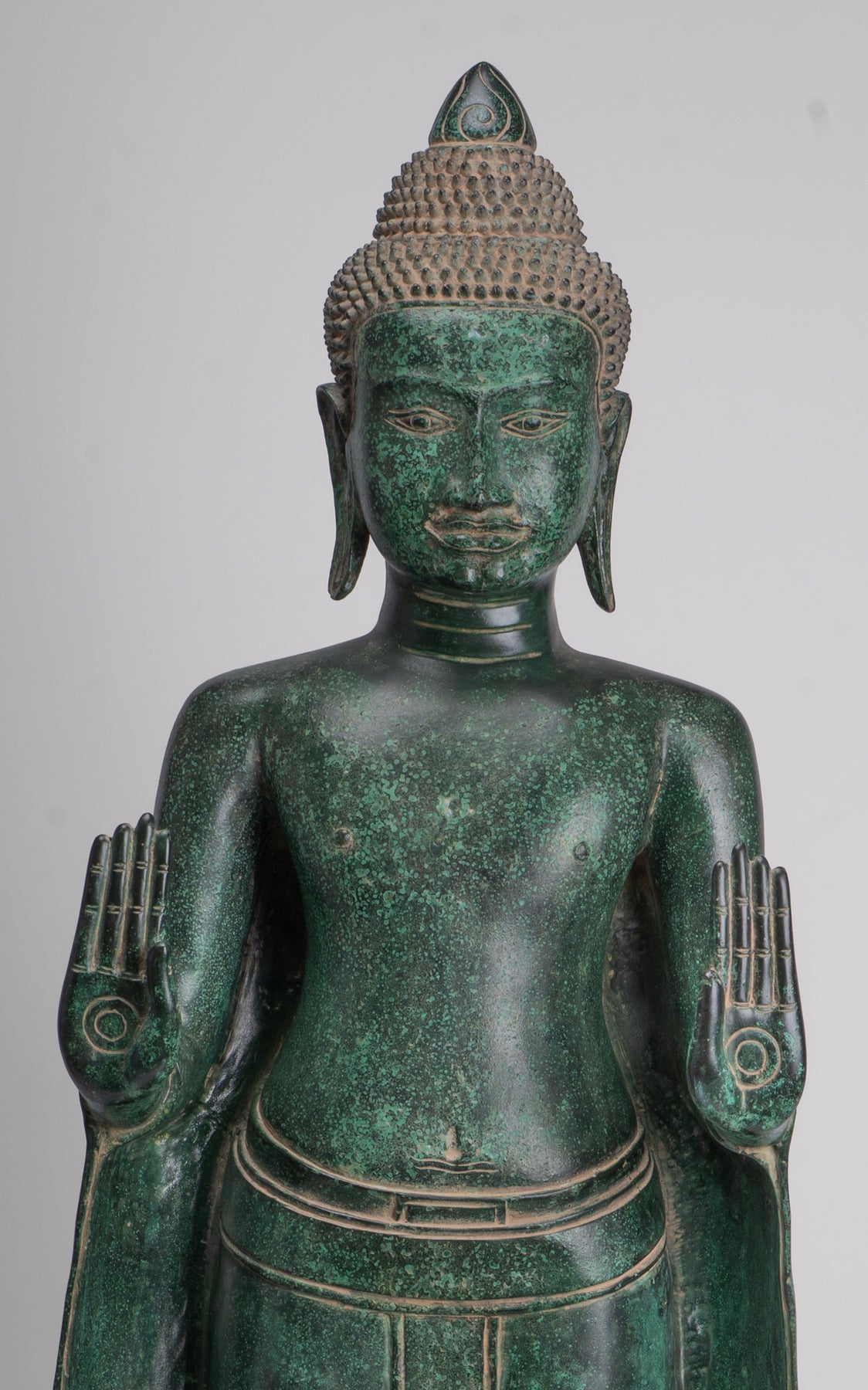 Large Buddha Statue - Antique Khmer Style Bronze Standing Abhaya Protection Buddha Statue - 123cm/49"