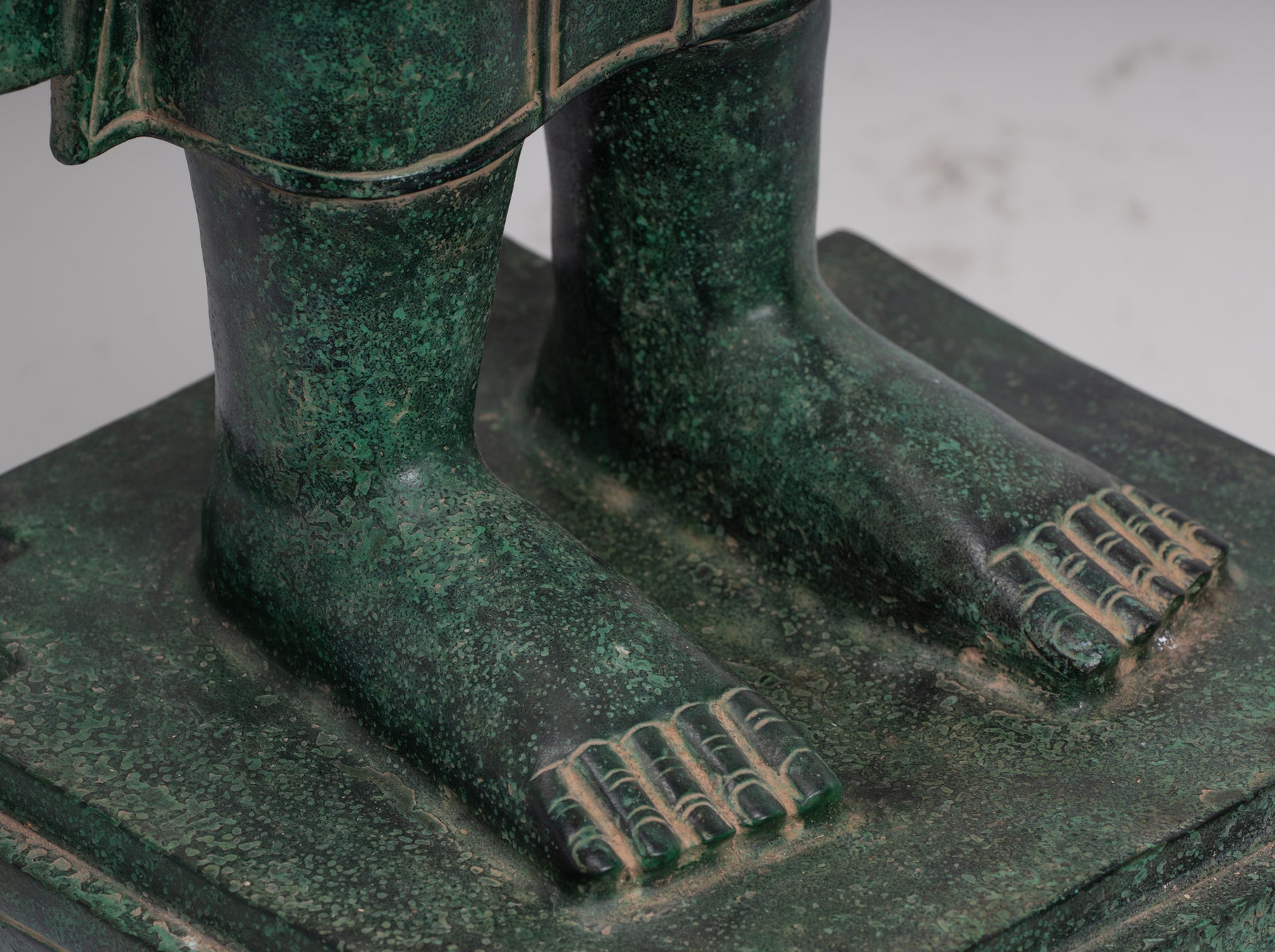 The casting is beautifully executed, evident in the precise details of the face, hands, and ornamental elements. A distinctive azurite and malachite patina enriches the surface with depth and character, enhancing the sculpture’s sense of age and dignity. Traditional in appearance yet full of presence, this Abhaya Buddha offers an ideal focal point to bring serenity, courage, and timeless style to any home, office, or sacred space.