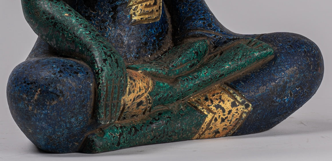 Antique Khmer Style Seated SE Asia Wood Enlightenment Buddha Statue - 32cm/13"