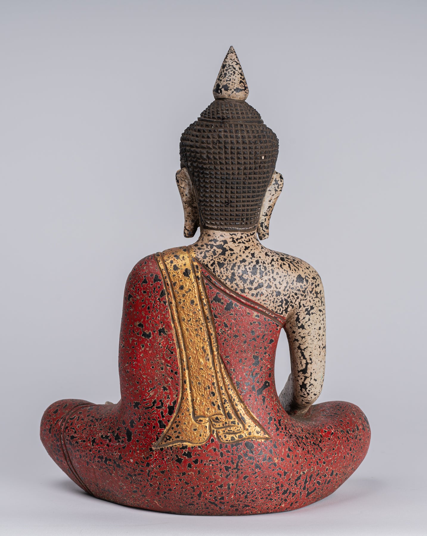 Buddha Sculpture - Antique Khmer Style Wood Seated Buddha Statue Dhyana Meditation Mudra - 26cm/11"