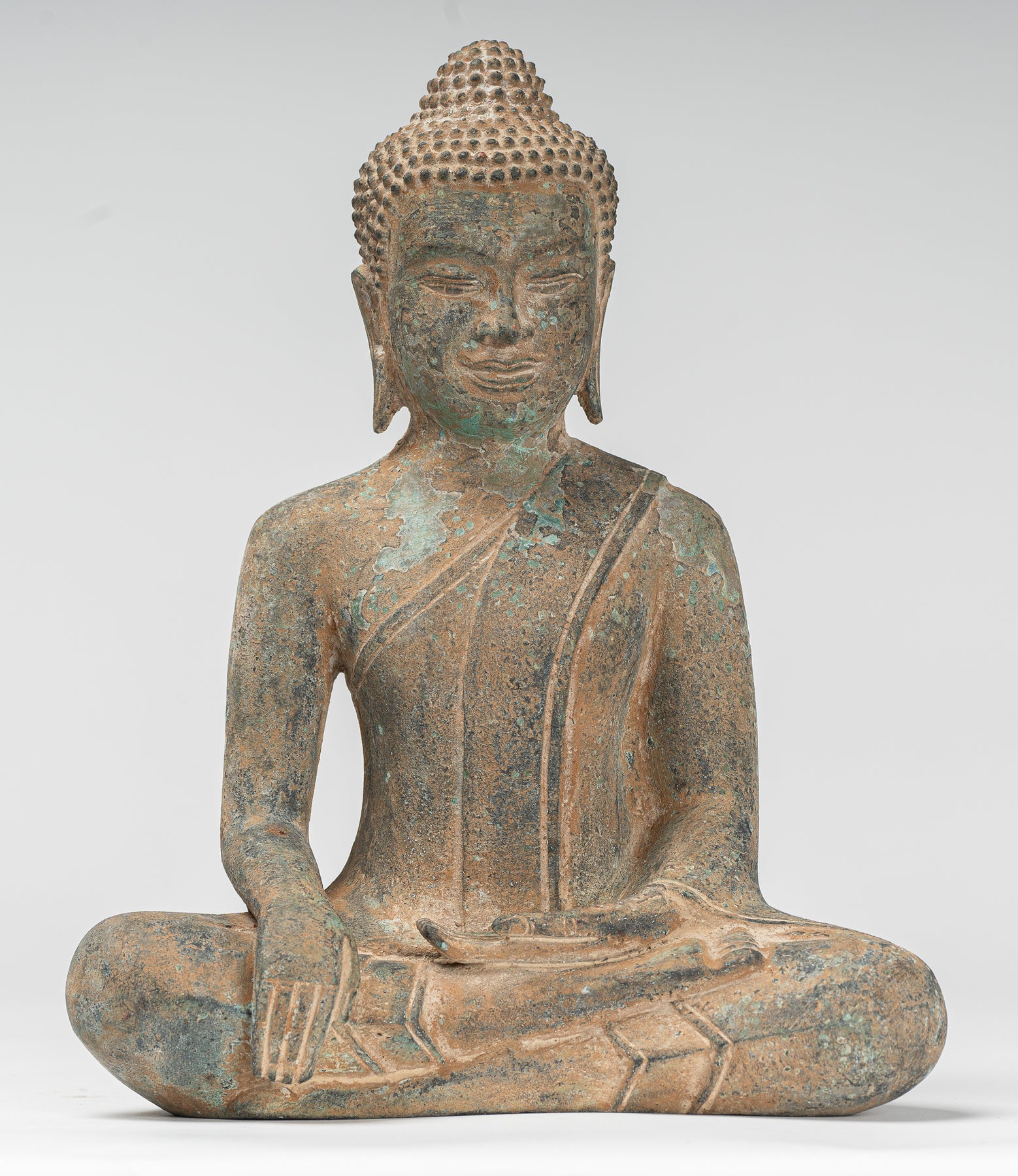 Antique Thai Style Bronze Seated Enlightenment Buddha Statue - 26cm/10"