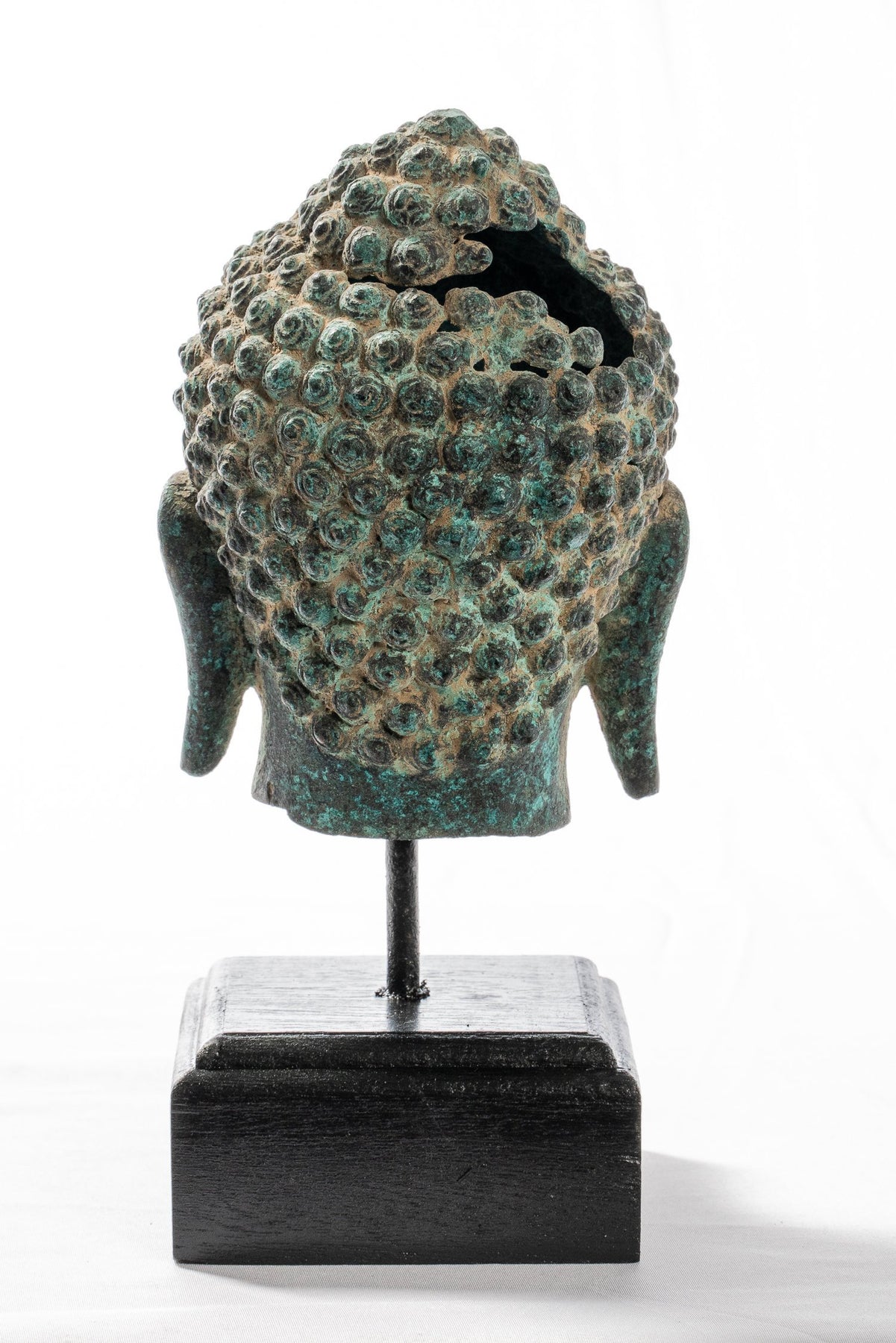 Antique Thai Style Moiunted Dvaravati Buddha Head Statue - 20cm/8"