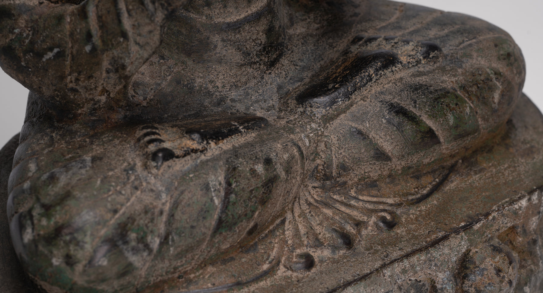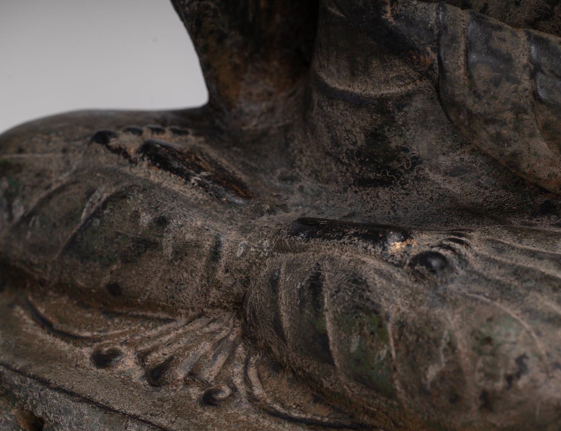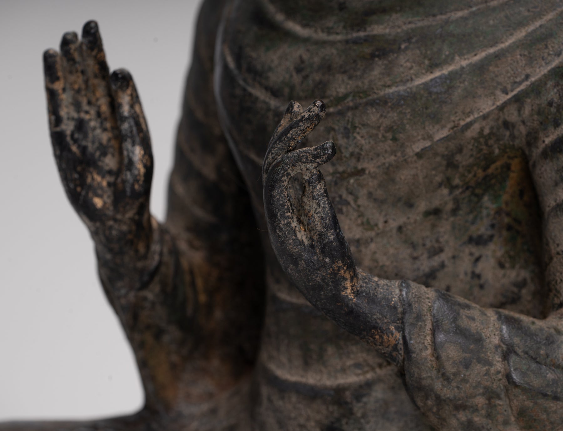 An antique Thai style Buddha seated in the double dharmachakra mudra.