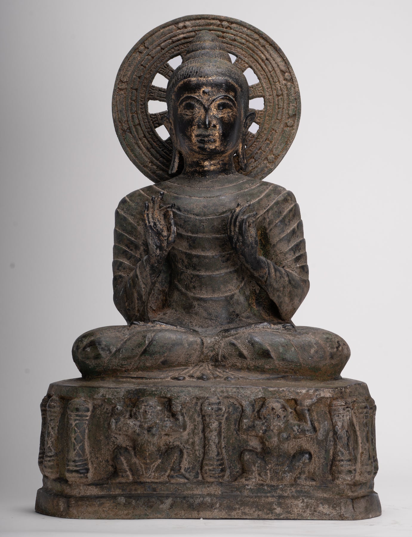 • Buddha Statue - Large Antique Thai Style Seated Bronze Teaching Buddha Statue Teaching - 54cm/22"