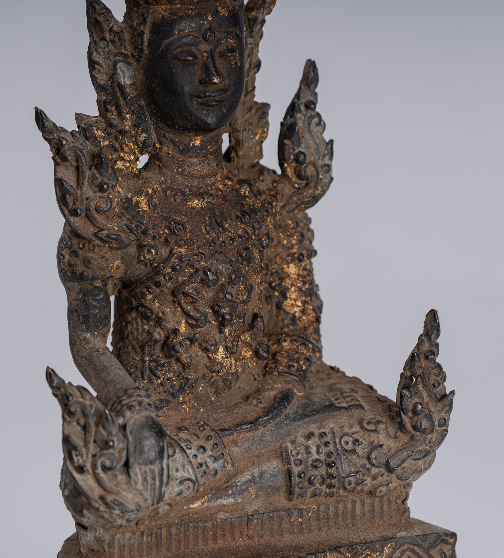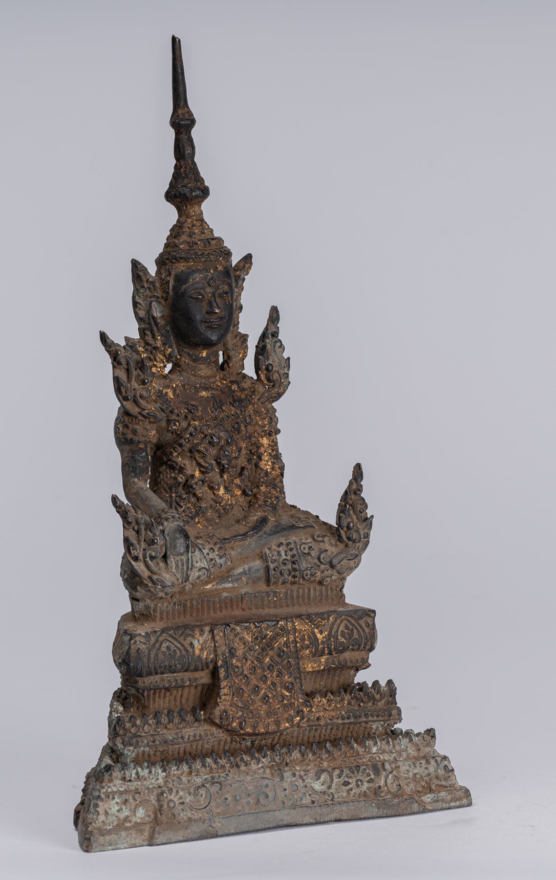 Antique Thai Style Seated Bronze Rattanakosin Enlightenment Buddha Statue - 21cm/8"