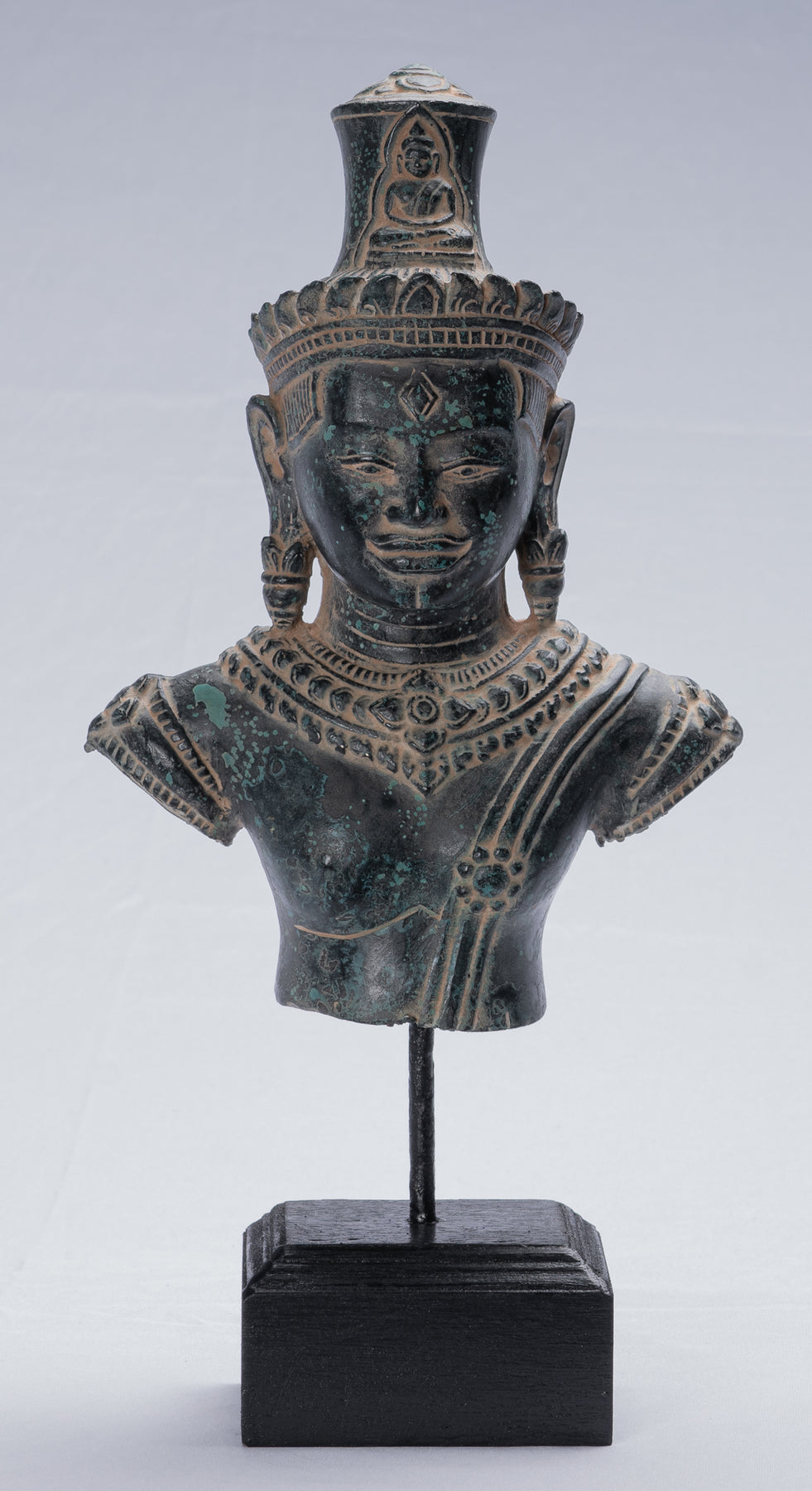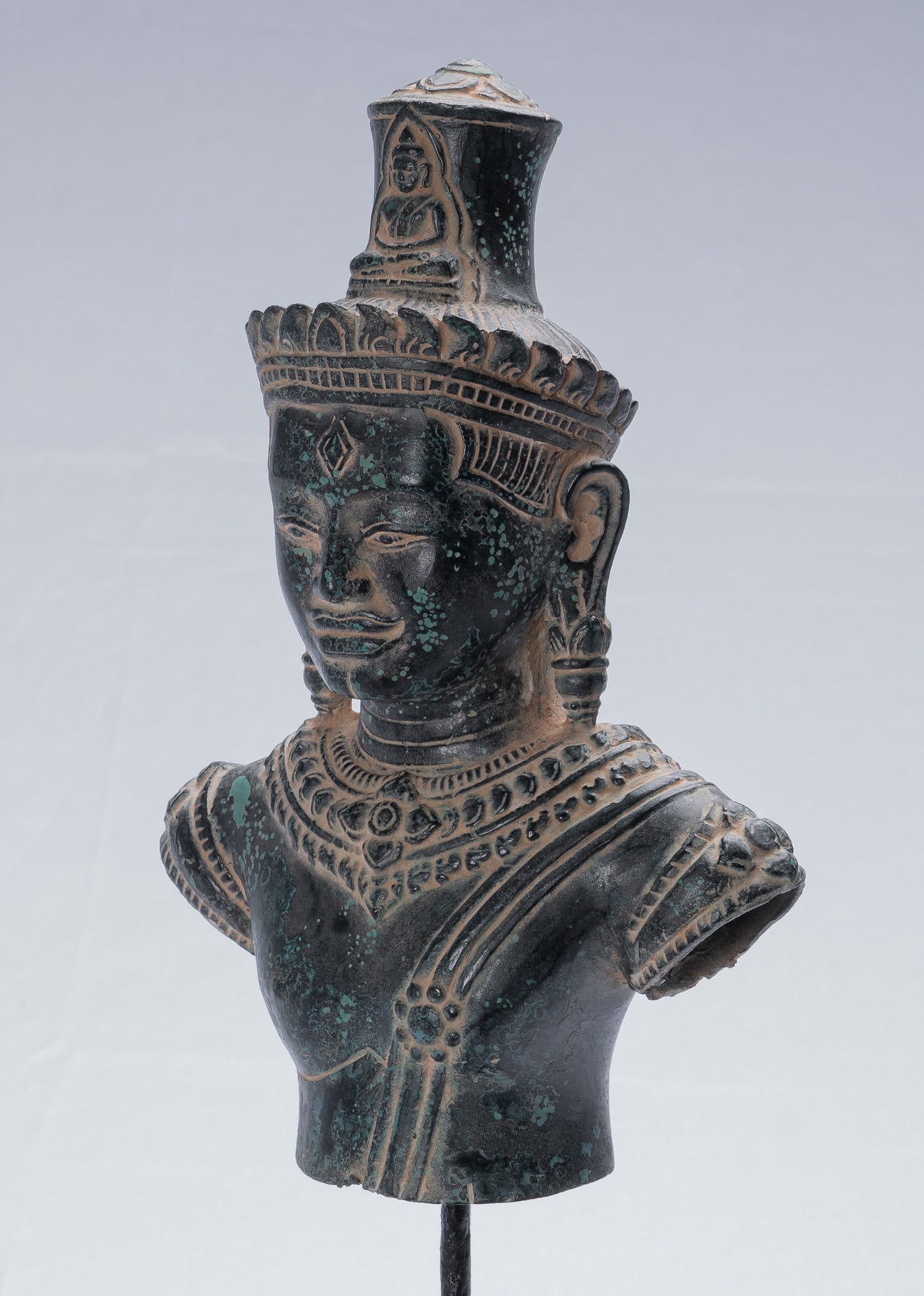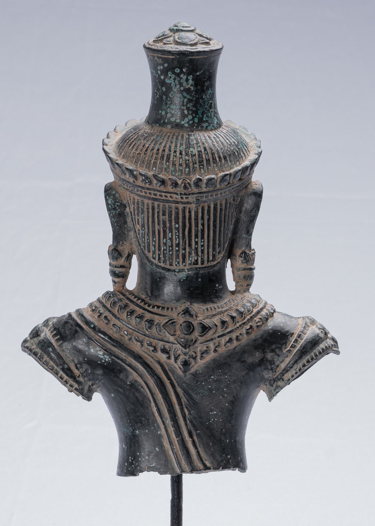 Antique Khmer Style Mounted Bronze Bayon Style Lokeshvara Torso - 37cm/15"