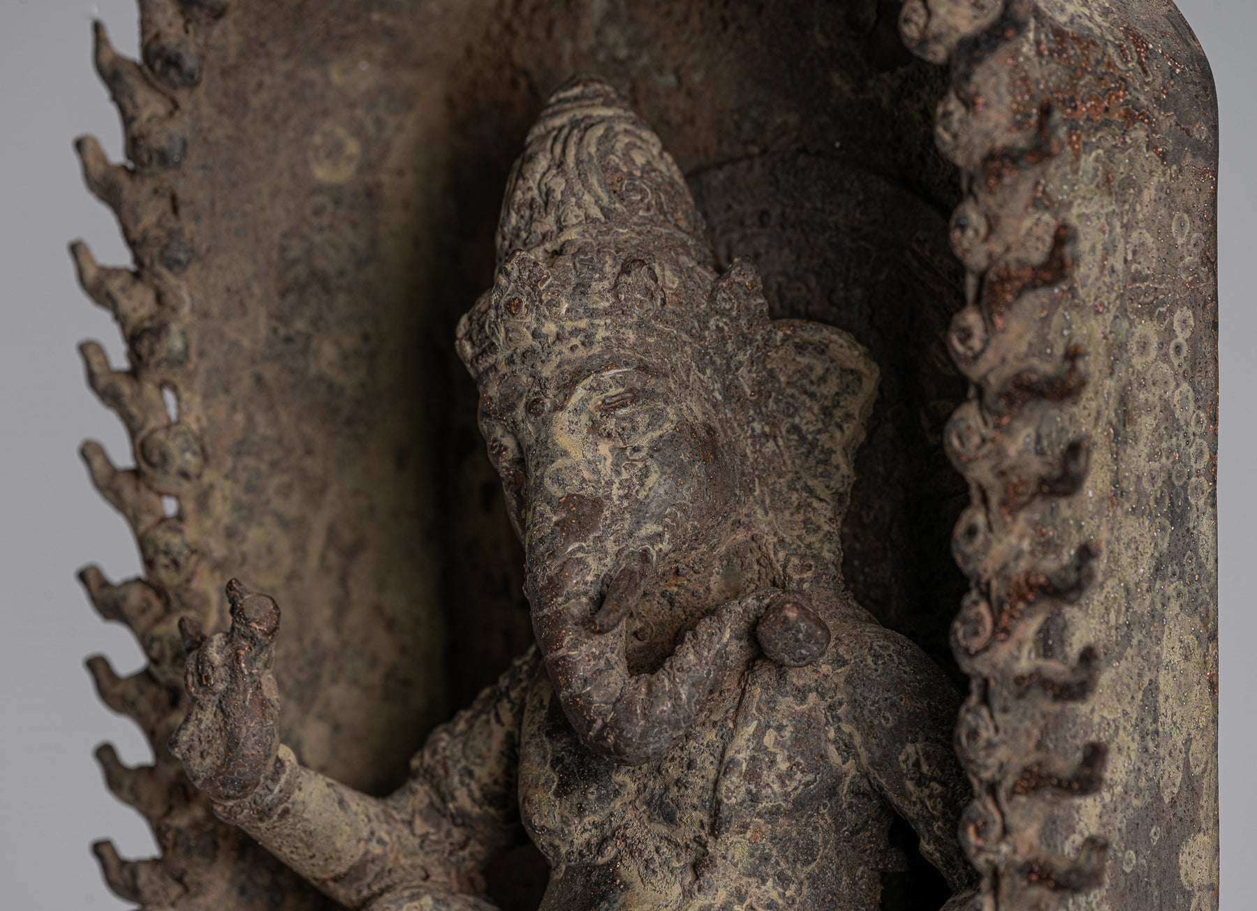 The direction of Ganesha's trunk has symbolic meaning. Here the trunk turns to Ganesha's left. This signifies the direction for success in the world. It is a position associated with grihastas, or householders.