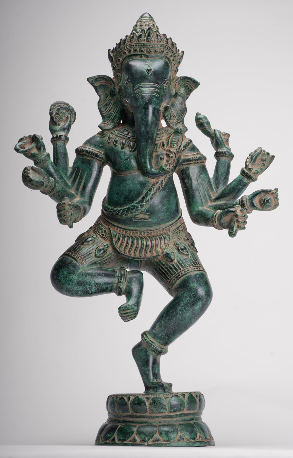 Antique Khmer Style Bronze Dancing Ganesha Statue - 50cm/20"