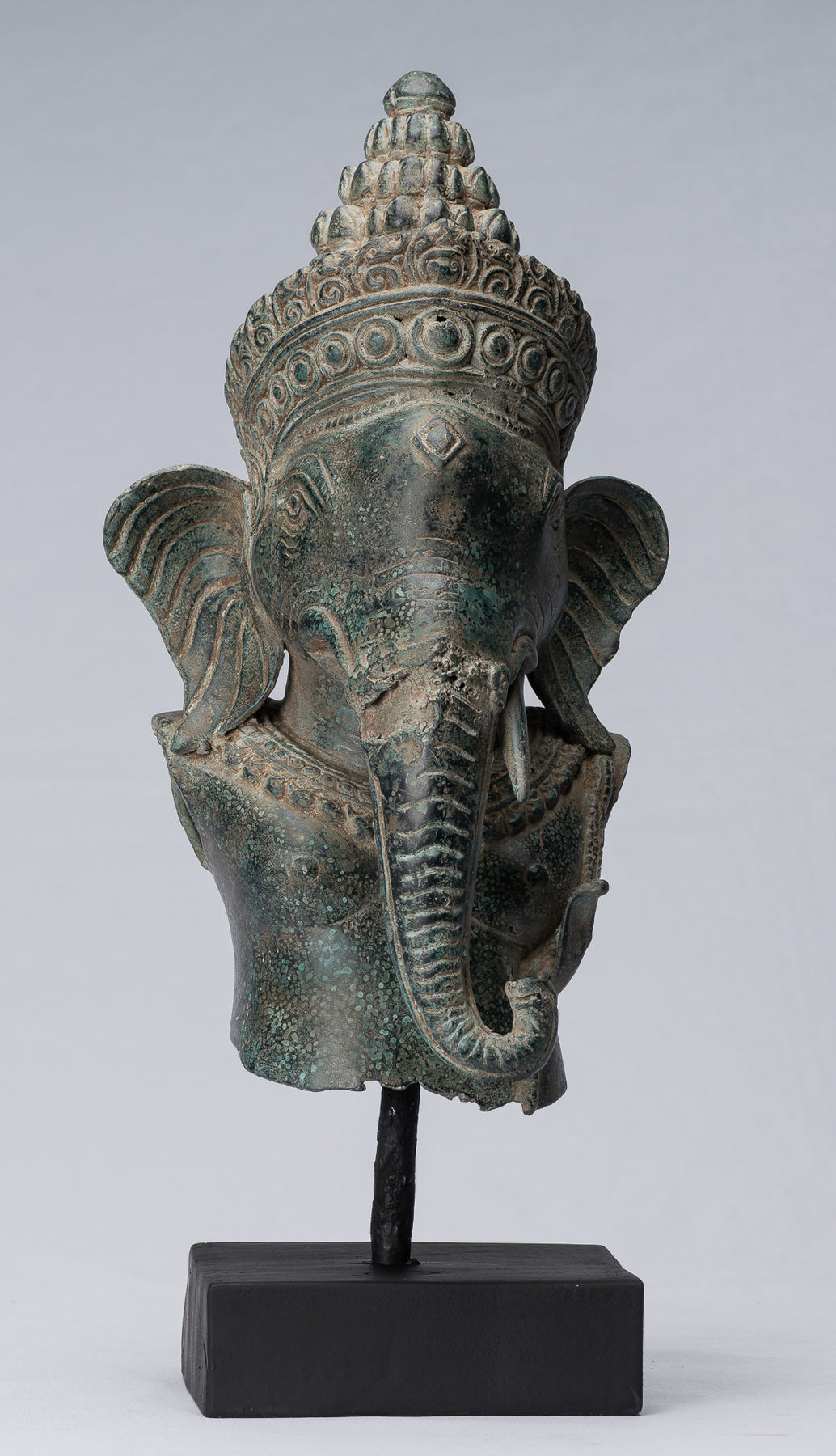 An antique 12th century Angkor Wat style mounted Khmer Ganesha torso.