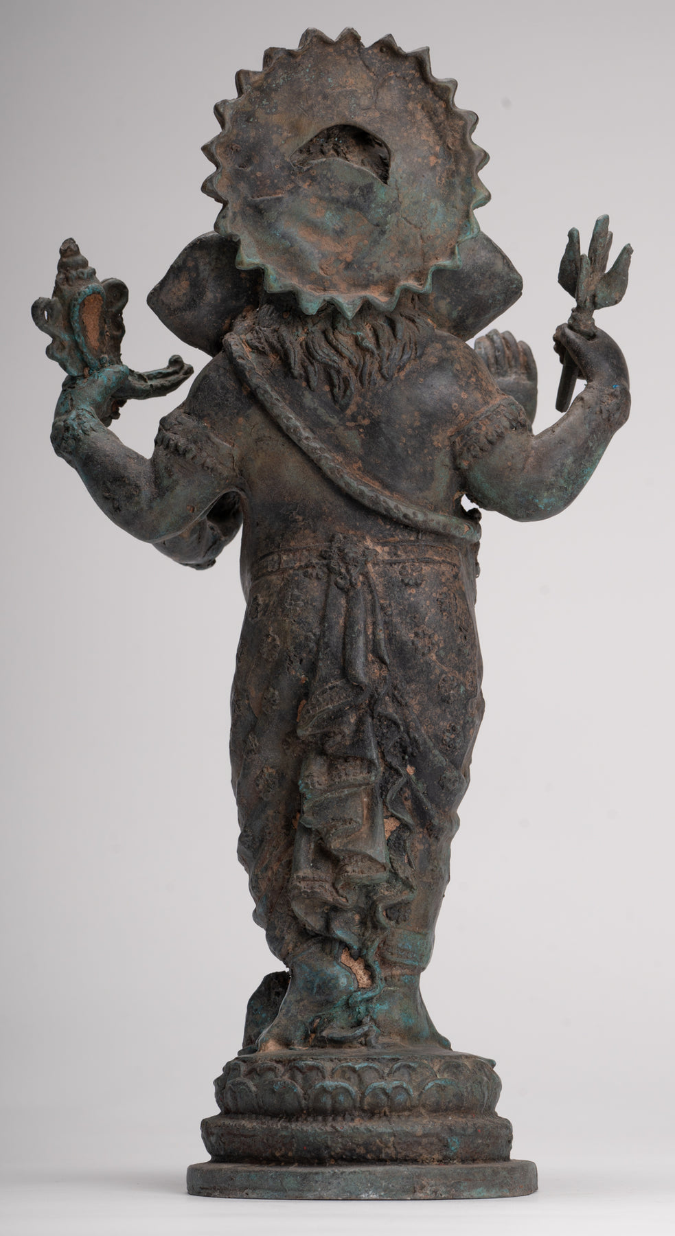 Ganesha Statue - Antique Thai Style Bronze Standing 4-Arm Ganesha Statue - 35cm/14"