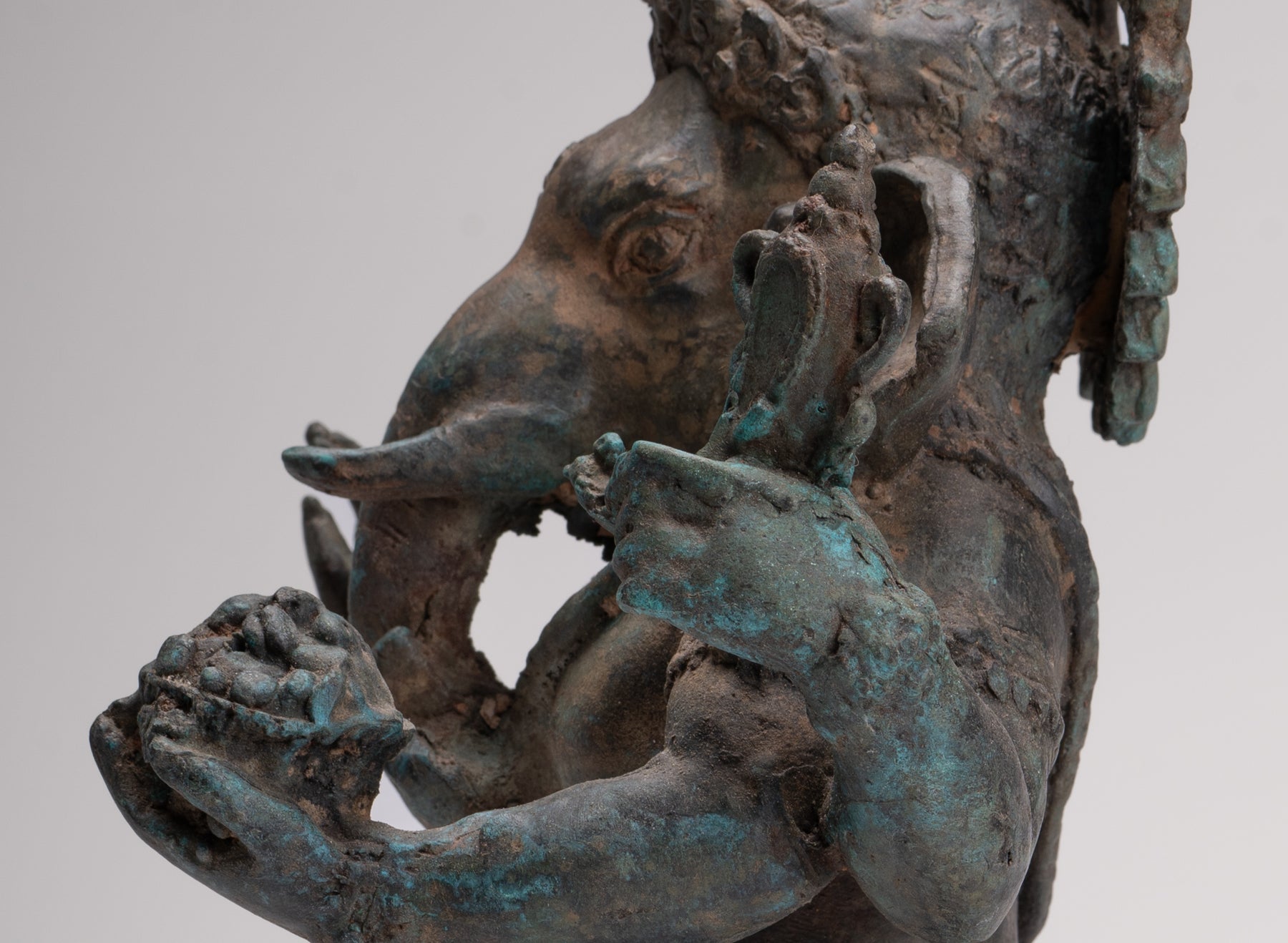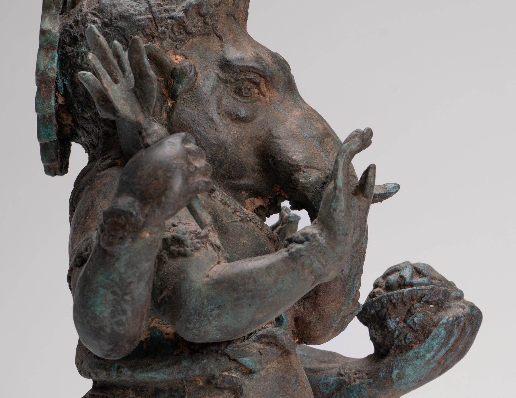 Ganesha Statue - Antique Thai Style Bronze Seated 4-Arm Ganesha Statue - 16cm/6"