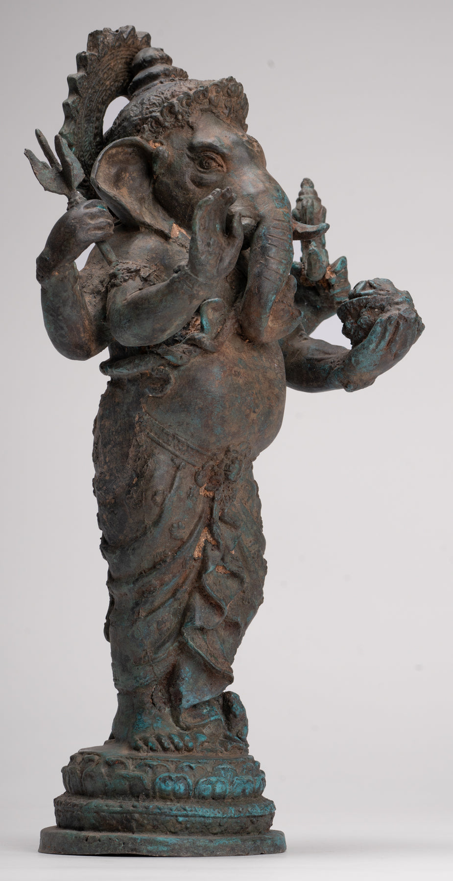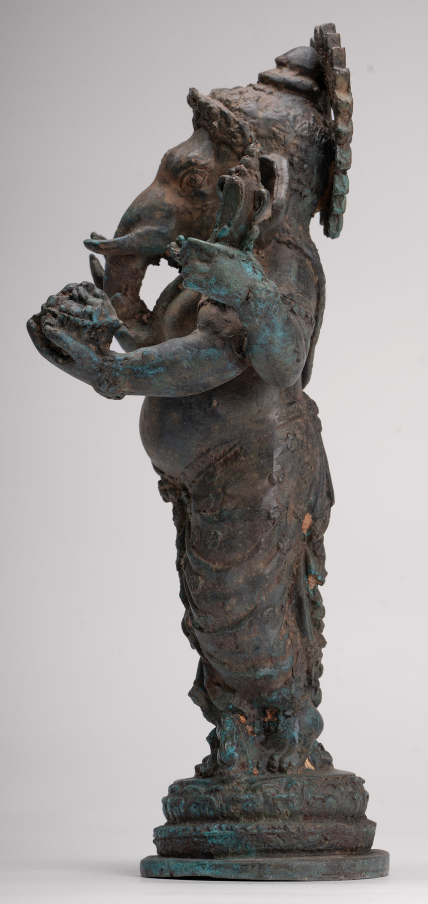 • Antique Thai Style Bronze Standing 4-Arm Ganesha Statue - 35cm/14"