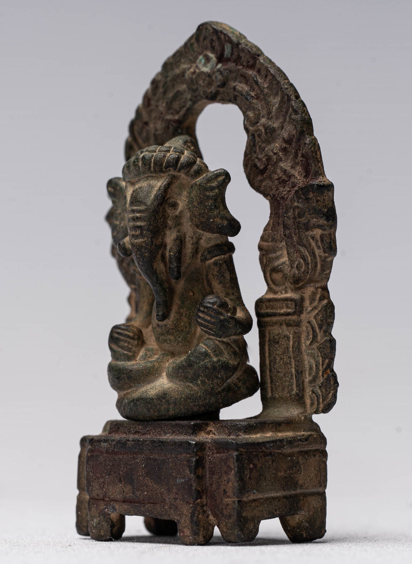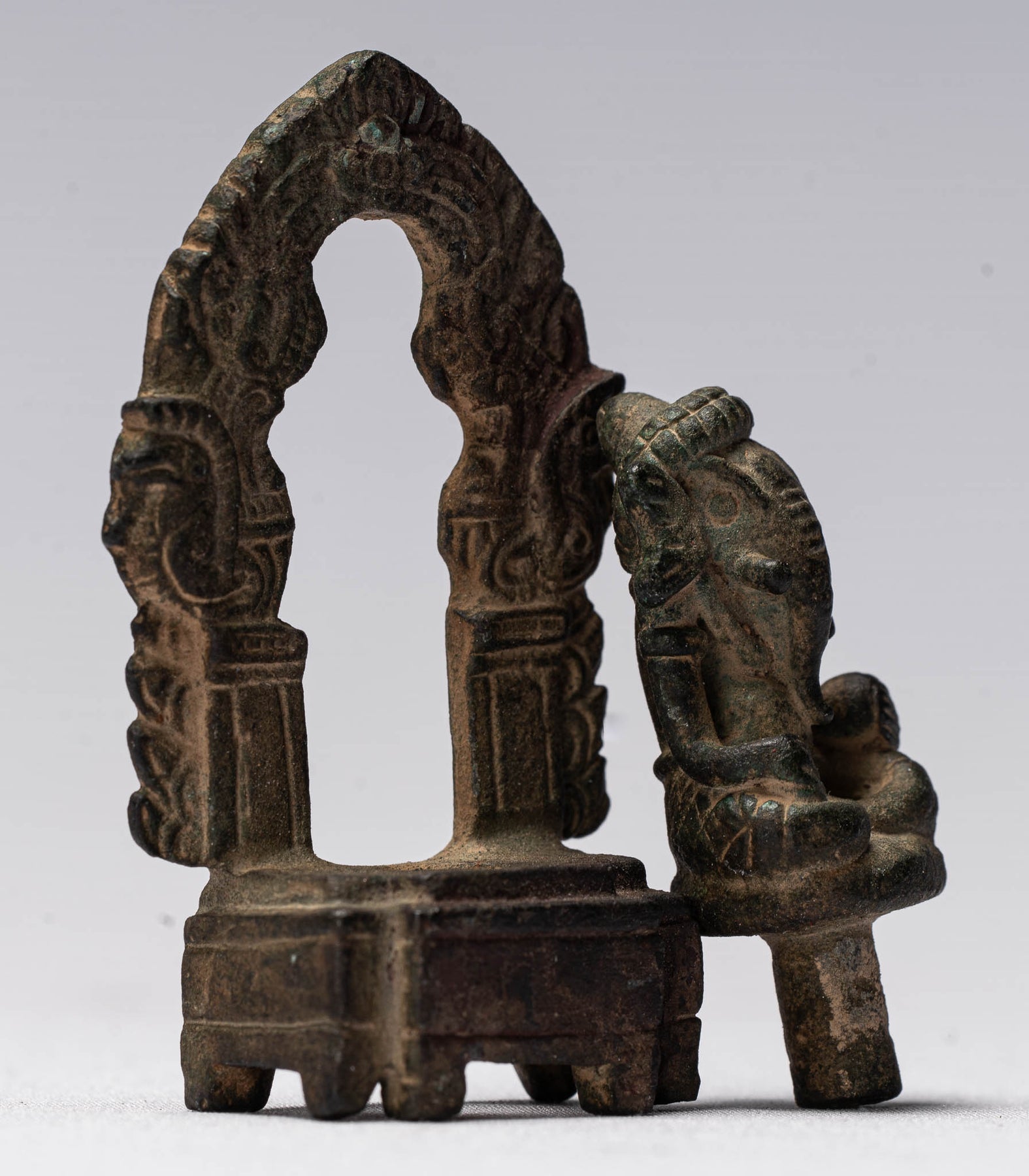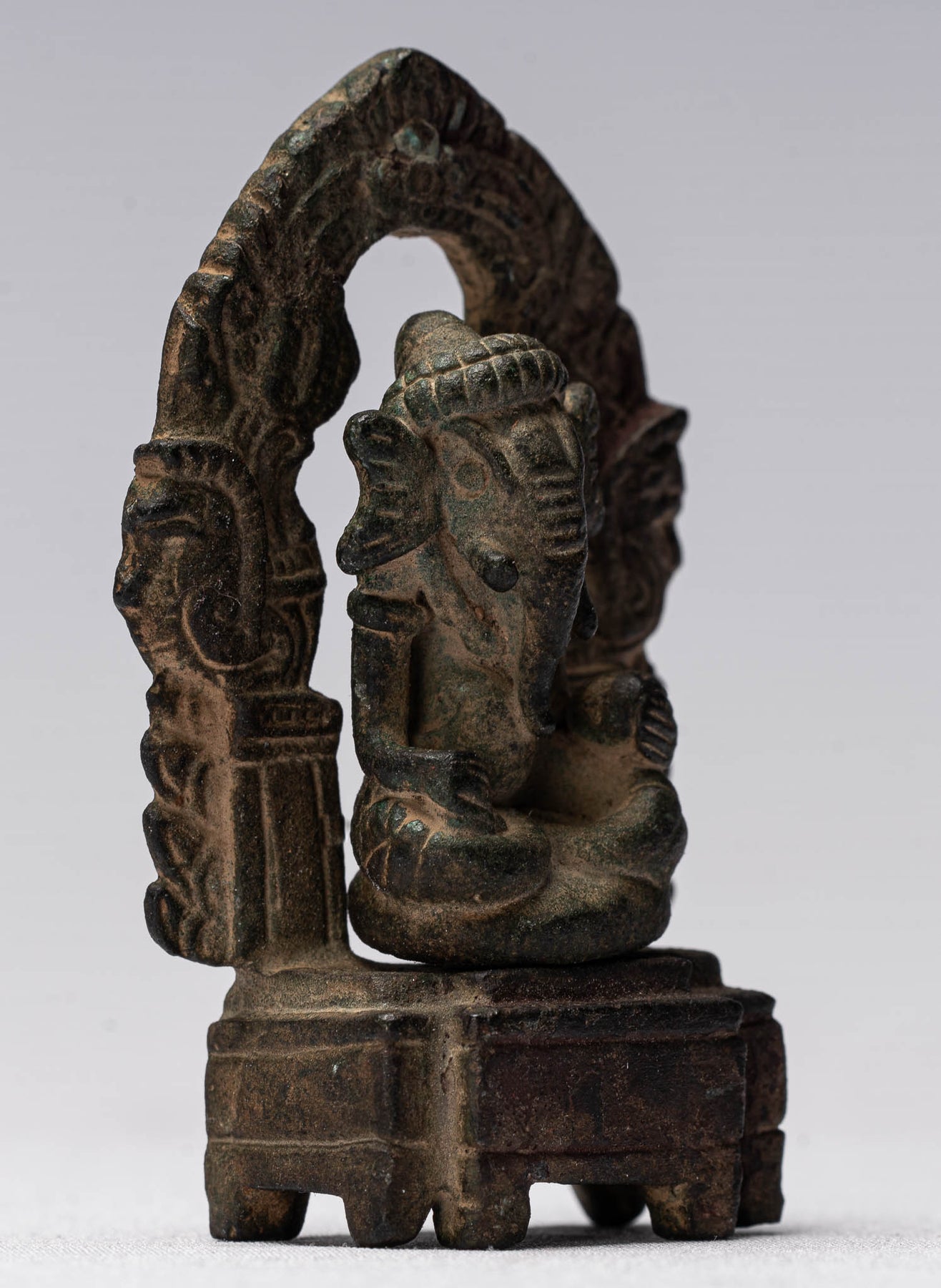Antique Thai Style Enthroned Bronze Seated Ganesha Statue - 6.5cm/3"