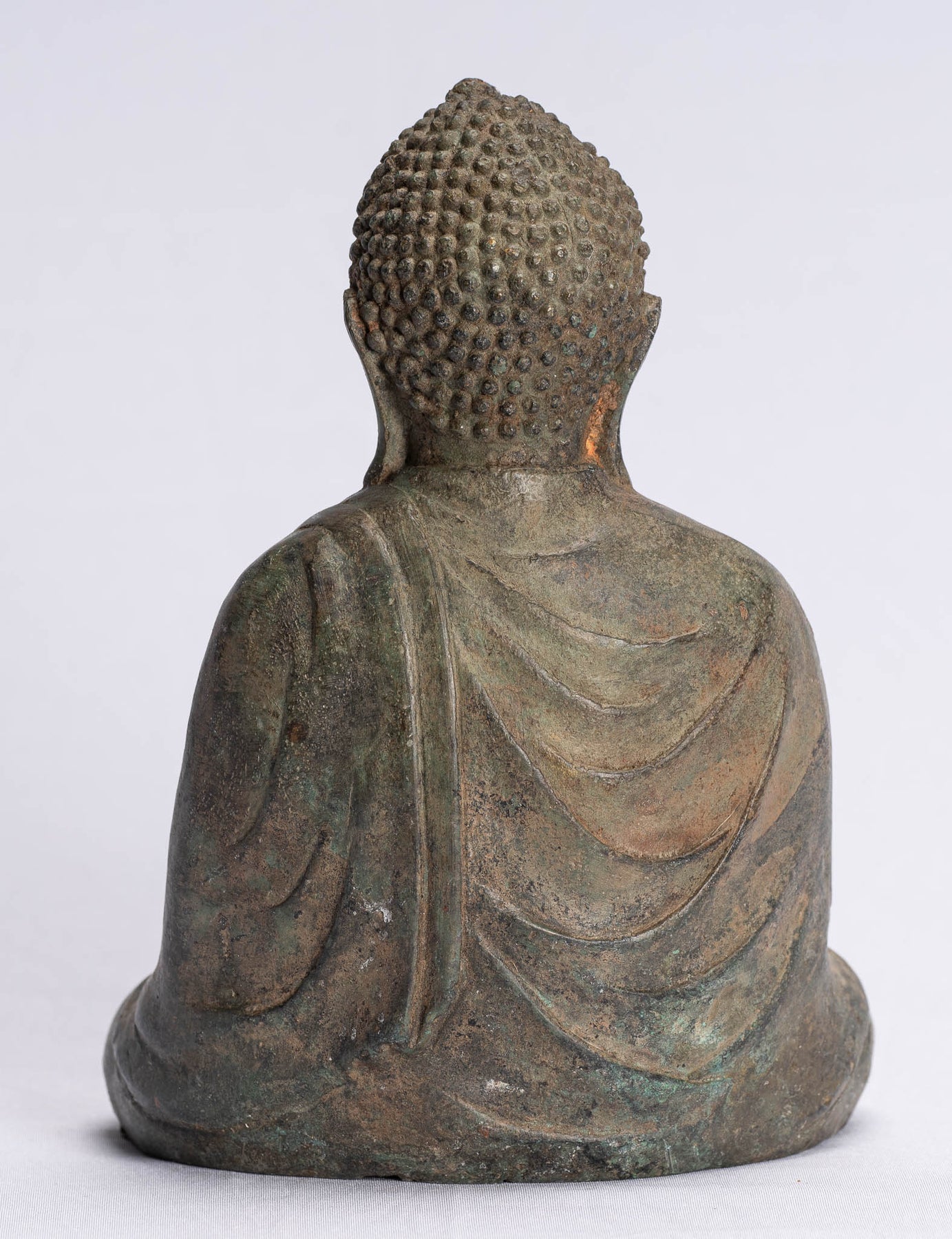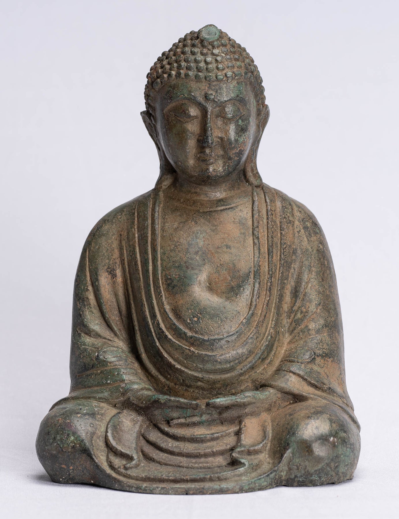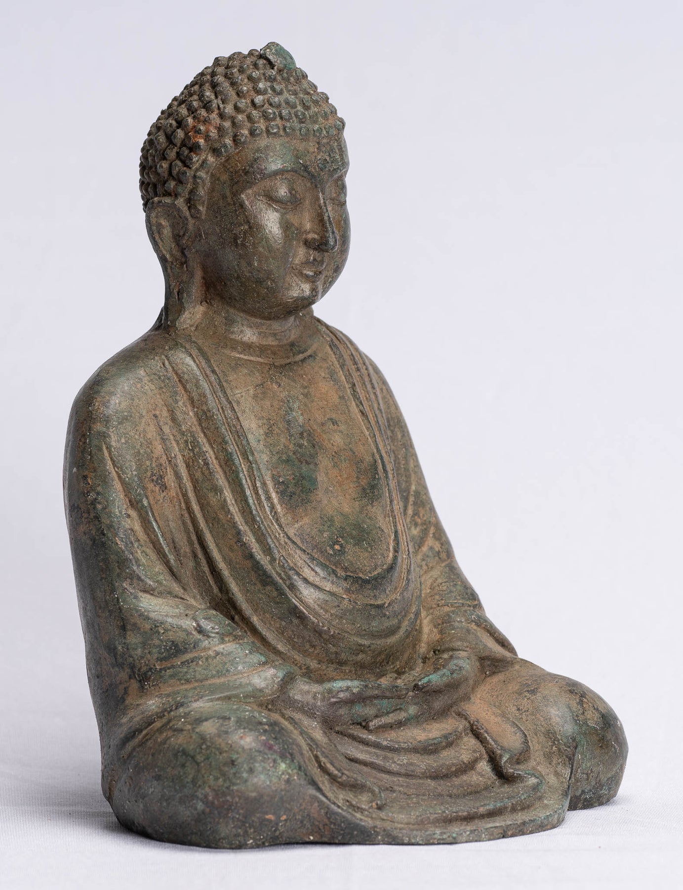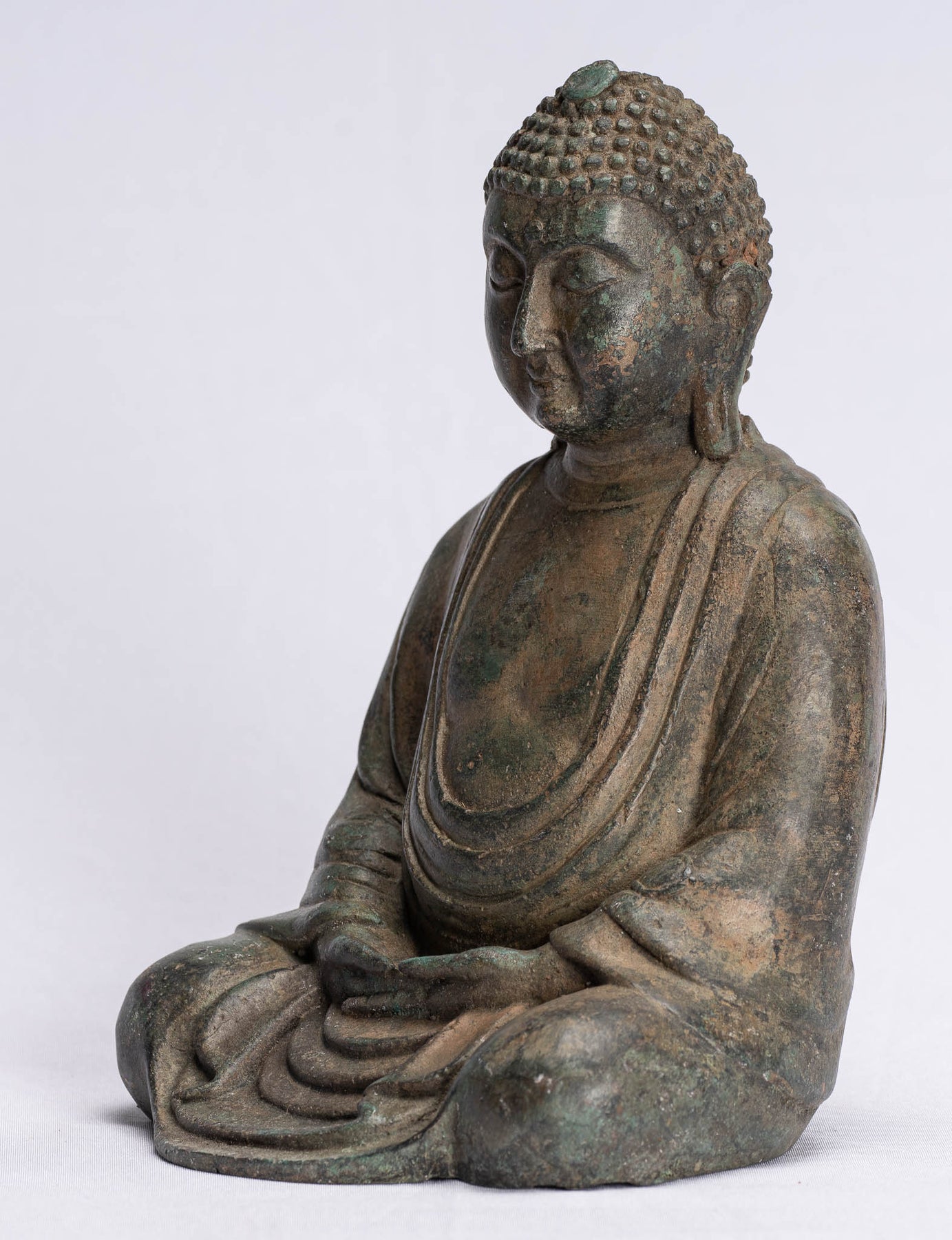 Antique Japanese Style Seated Bronze Meditation Amitabha Buddha Statue - 18cm/7"