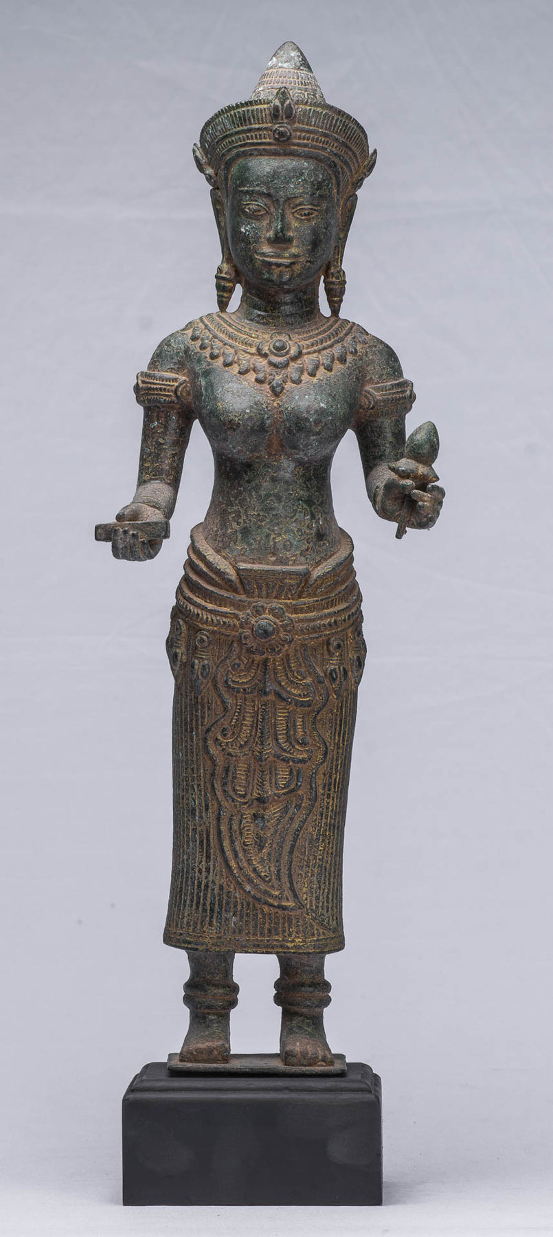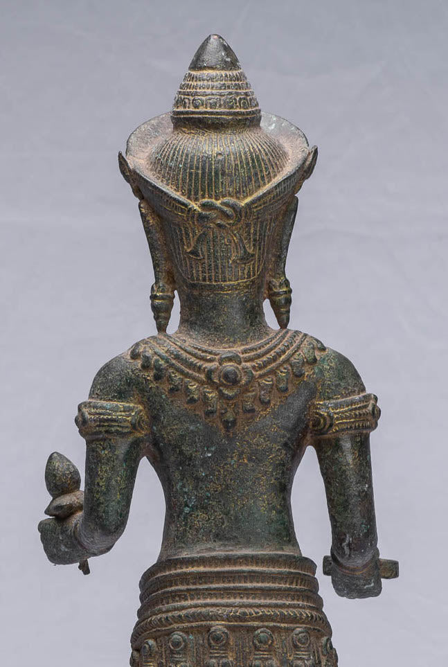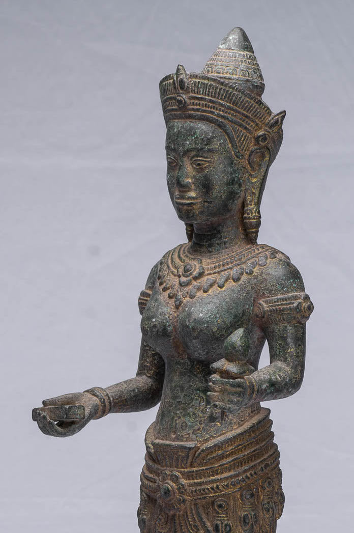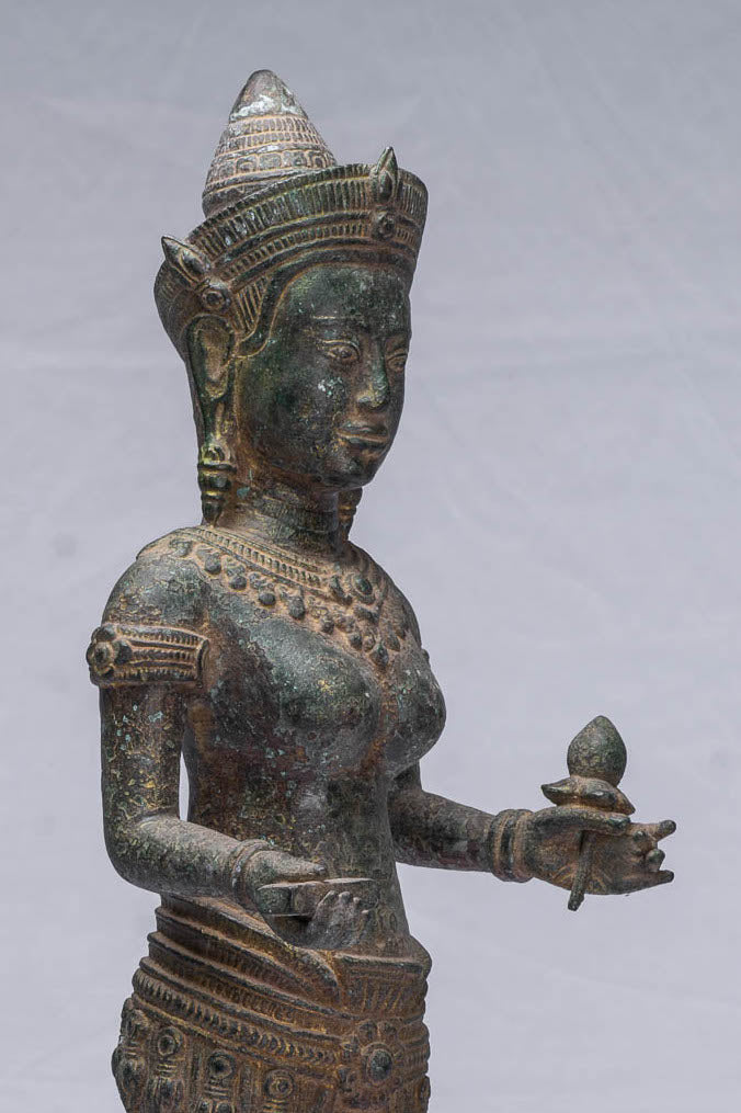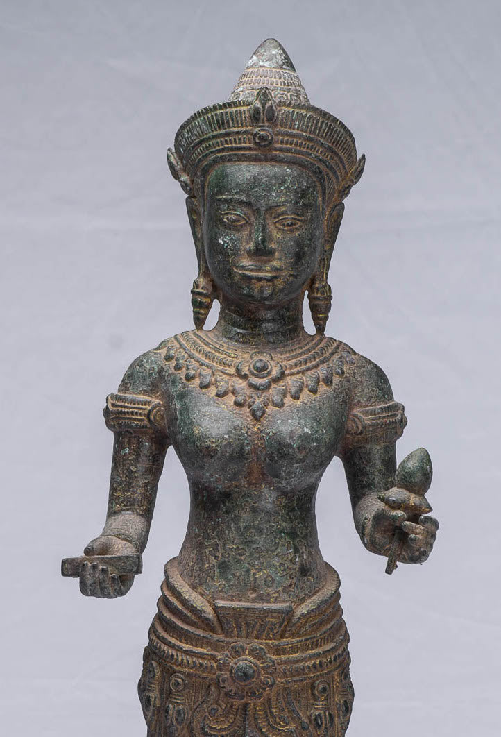 An antique Khmer style bronze Lakshmi, devi or Goddess sculpture.