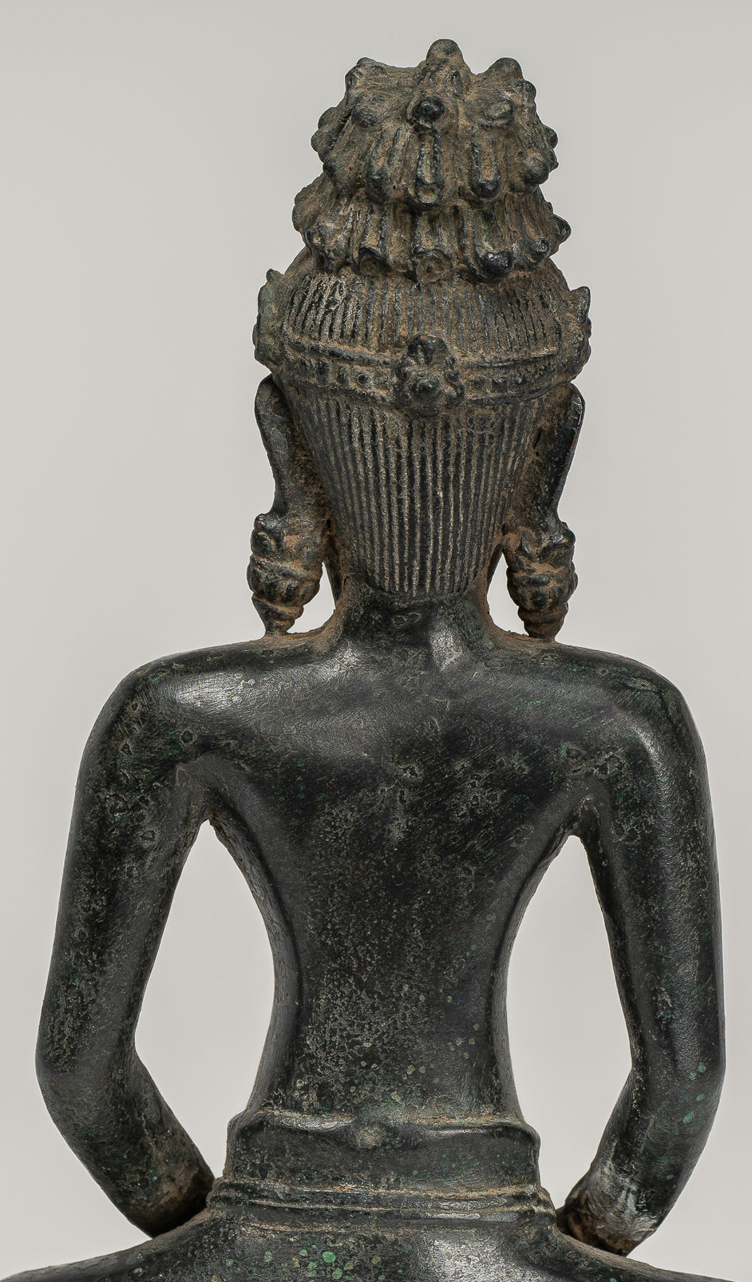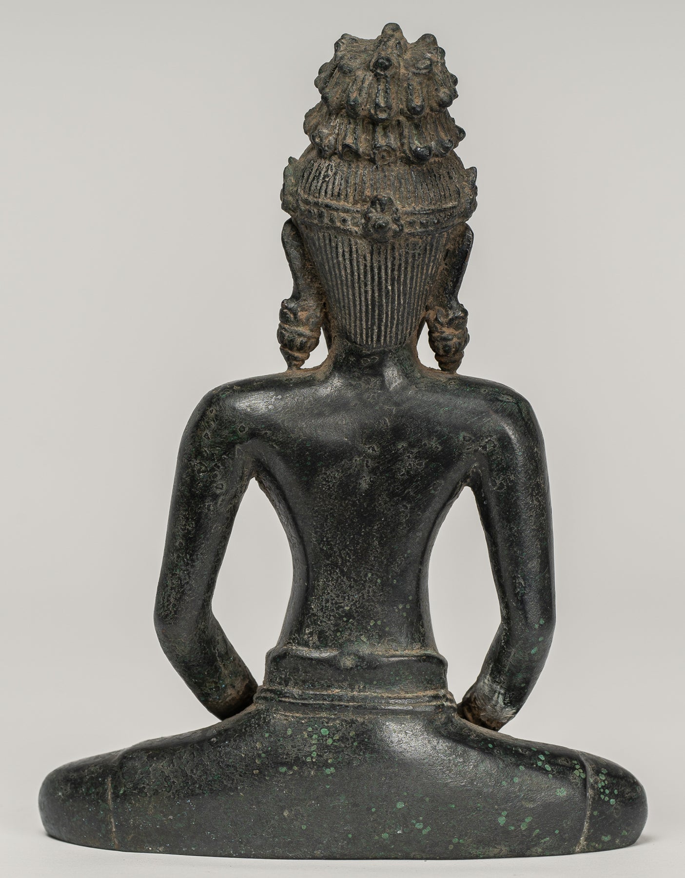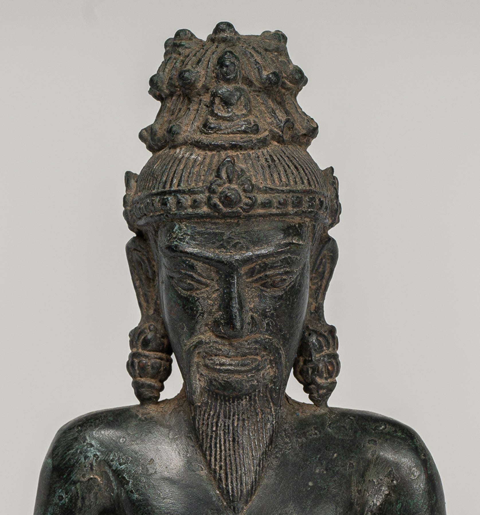 Rishi Statue - Antique Khmer Style Seated Bronze Rishi or Wise Man - 17cm/7"