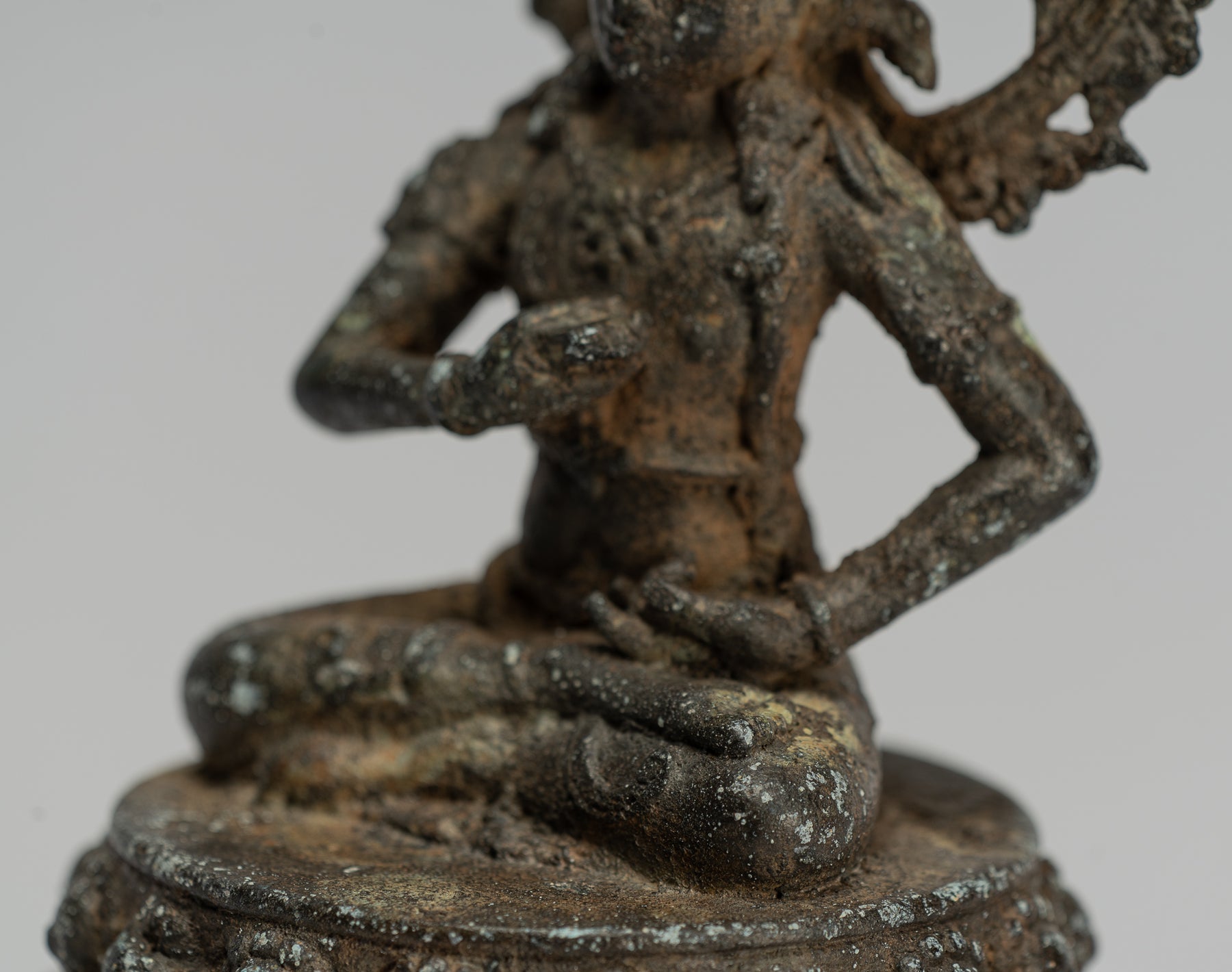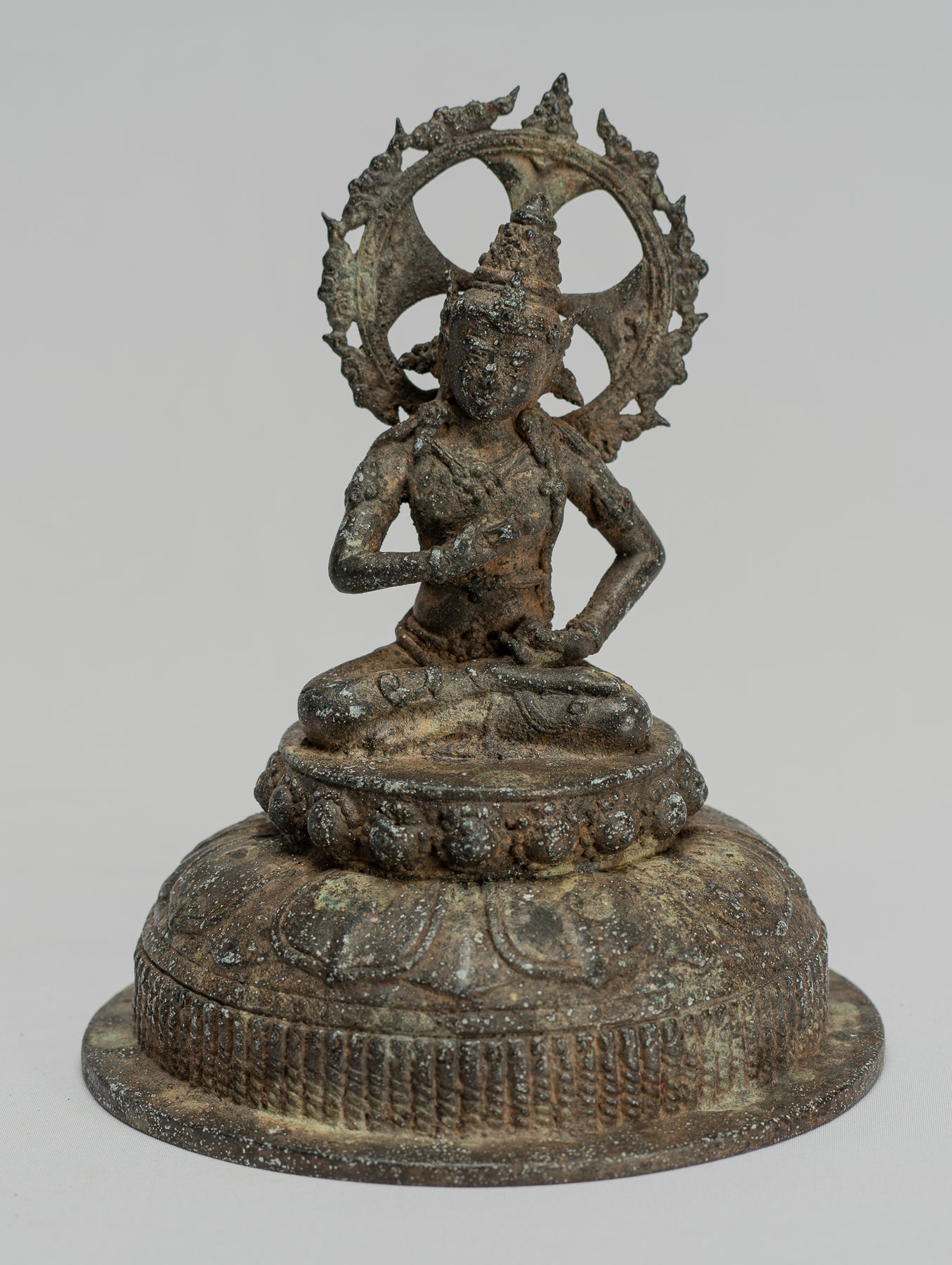 An antique Java Style seated bronze Devi Tara sculpture in the 13th century Majapahit style.